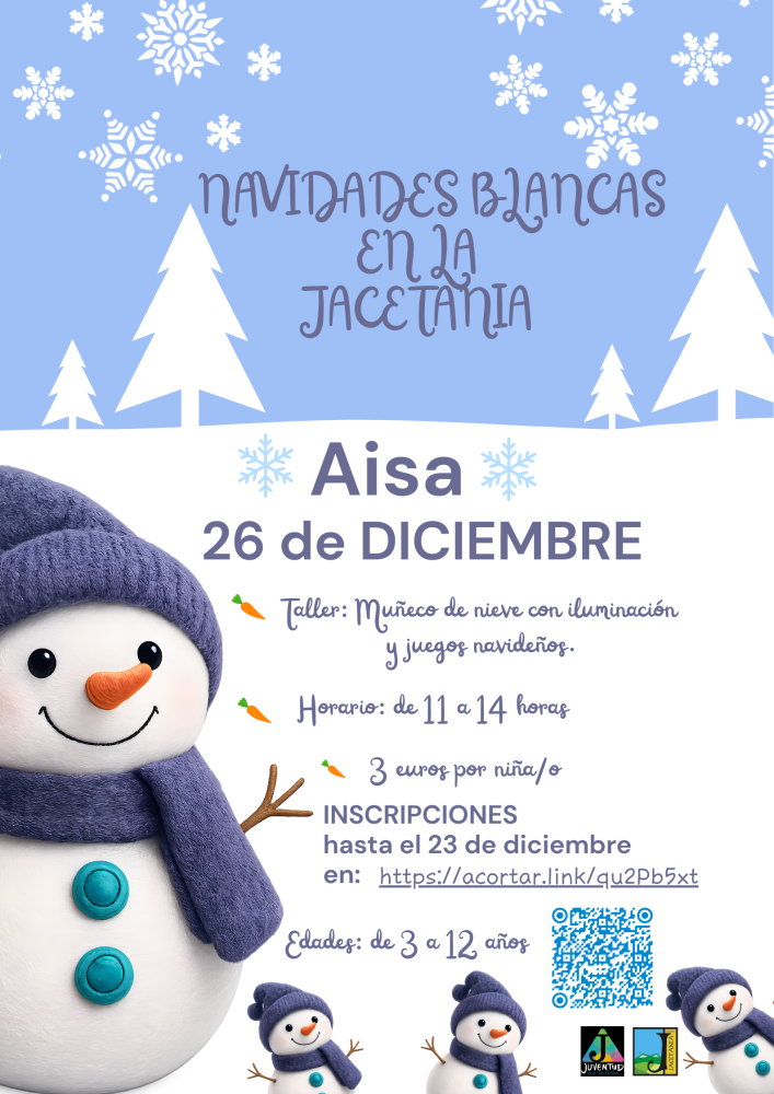Navidades Blancas en la Jacetania. Aisa Whatsapp: Navidades Blancas en la Jacetania. Aisa Fecha 16 diciembre 2025 Día 26 de diciembre de 11 a 14 Galería imágenes Enlaces Inscripciones cat: Infancia y juventud, vaobulcary: 3185265