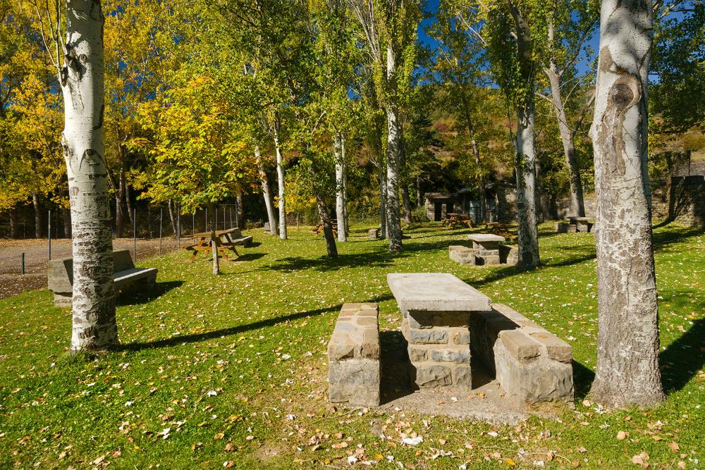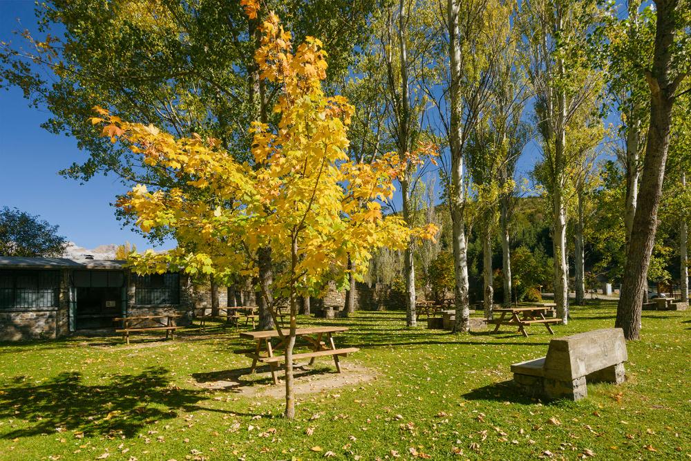 Existe un edificio cerrado con varios hogares en el que hay posibilidad de encender fuego para hacer asados.